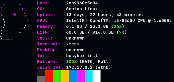 This tool is distributed under the MIT license, the logos were taken from pfetch, neofetch and fastfetch.